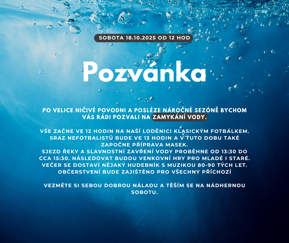 Jako každý rok bychom Vás chtěli pozvat na tradiční zamykání vody.